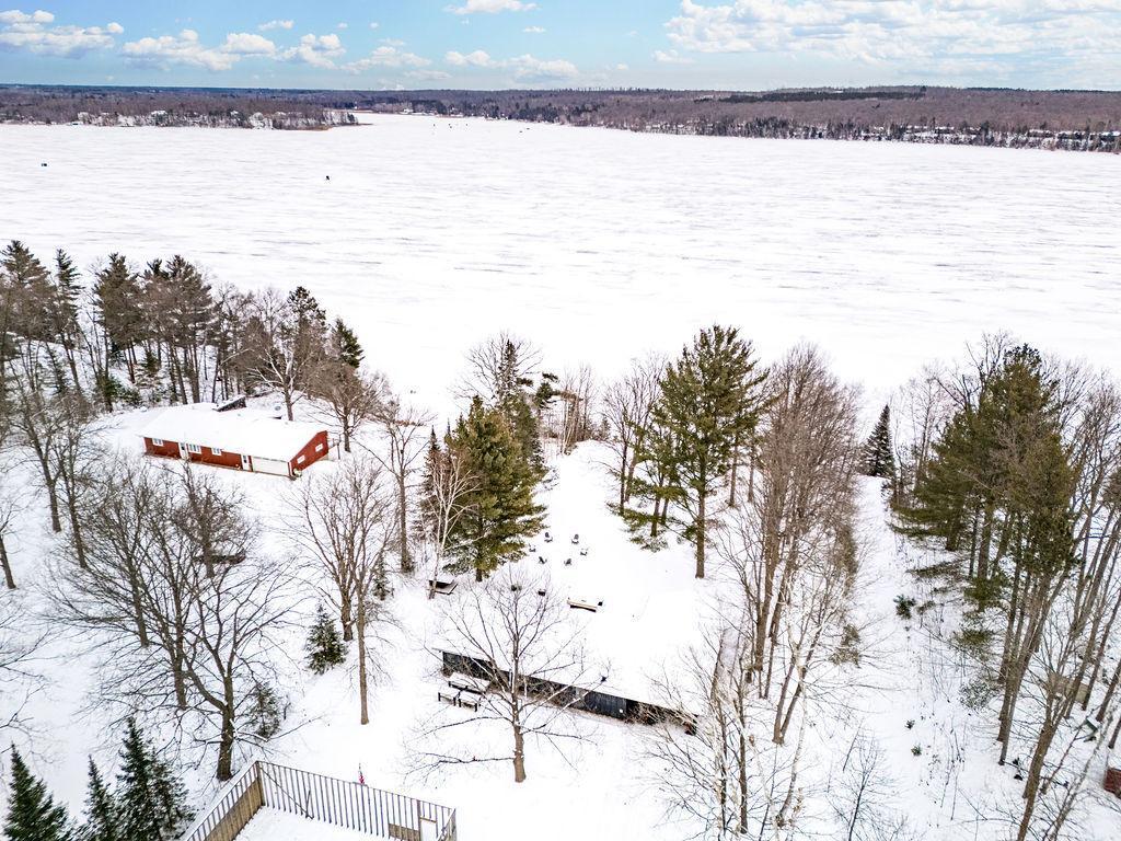 This inviting lakefront home on coveted Pokegama offers a rare opportunity to enjoy year-round lakeside living in Grand Rapids, Minnesota. With approximately 130 feet of private sandy shoreline, crystal-clear water, and breathtaking lake views, this property is a true retreat in every season. The home features 2 bedrooms, 2 bathrooms, and 1,477 finished square feet, thoughtfully designed to blend comfort, style, and functionality. Light-filled living spaces are enhanced by floor-to-ceiling windows that frame stunning water views, while low-maintenance wood-look tile and designer lighting create a refined yet welcoming atmosphere. The well-appointed kitchen is ideal for both everyday living and entertaining, featuring quartz countertops, stainless steel appliances, and ample storage. The spacious primary suite offers a peaceful escape with custom cabinetry, an oversized walk-in shower, a freestanding soaking tub, and a double quartz vanity. A second bedroom and bathroom provide comfort and privacy for guests. A generous entry with built-in storage, a laundry room with new washer and dryer, and an unfinished basement offering excellent storage and future expansion potential. Outdoor living is a highlight of this property. A newly installed, lighted staircase leads to your private beach and dock, while the fire pit creates the perfect setting for lakeside gatherings. Whether enjoying summer days on the water or winter activities in the colder months, this home is designed to celebrate Minnesota's natural beauty in every season.