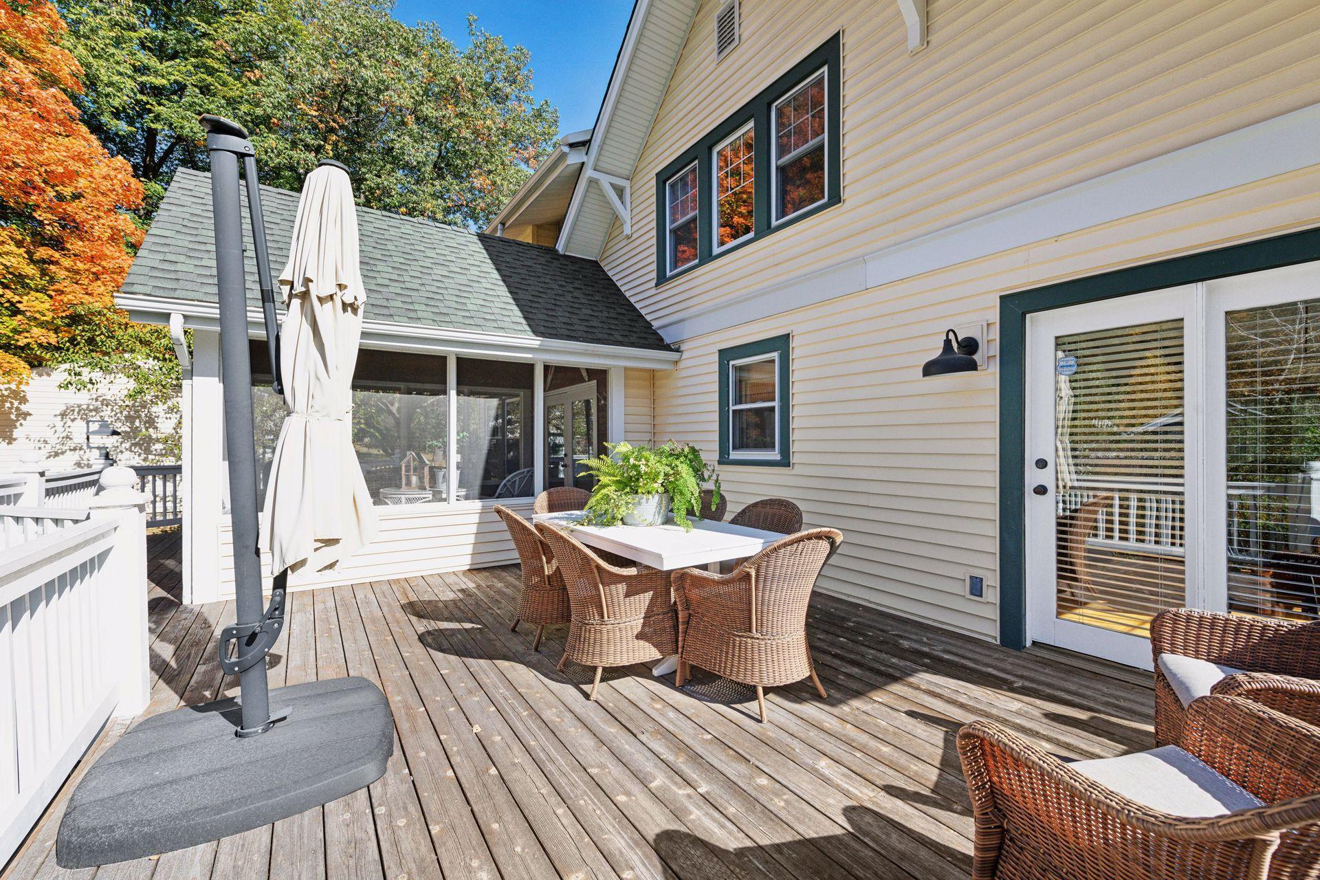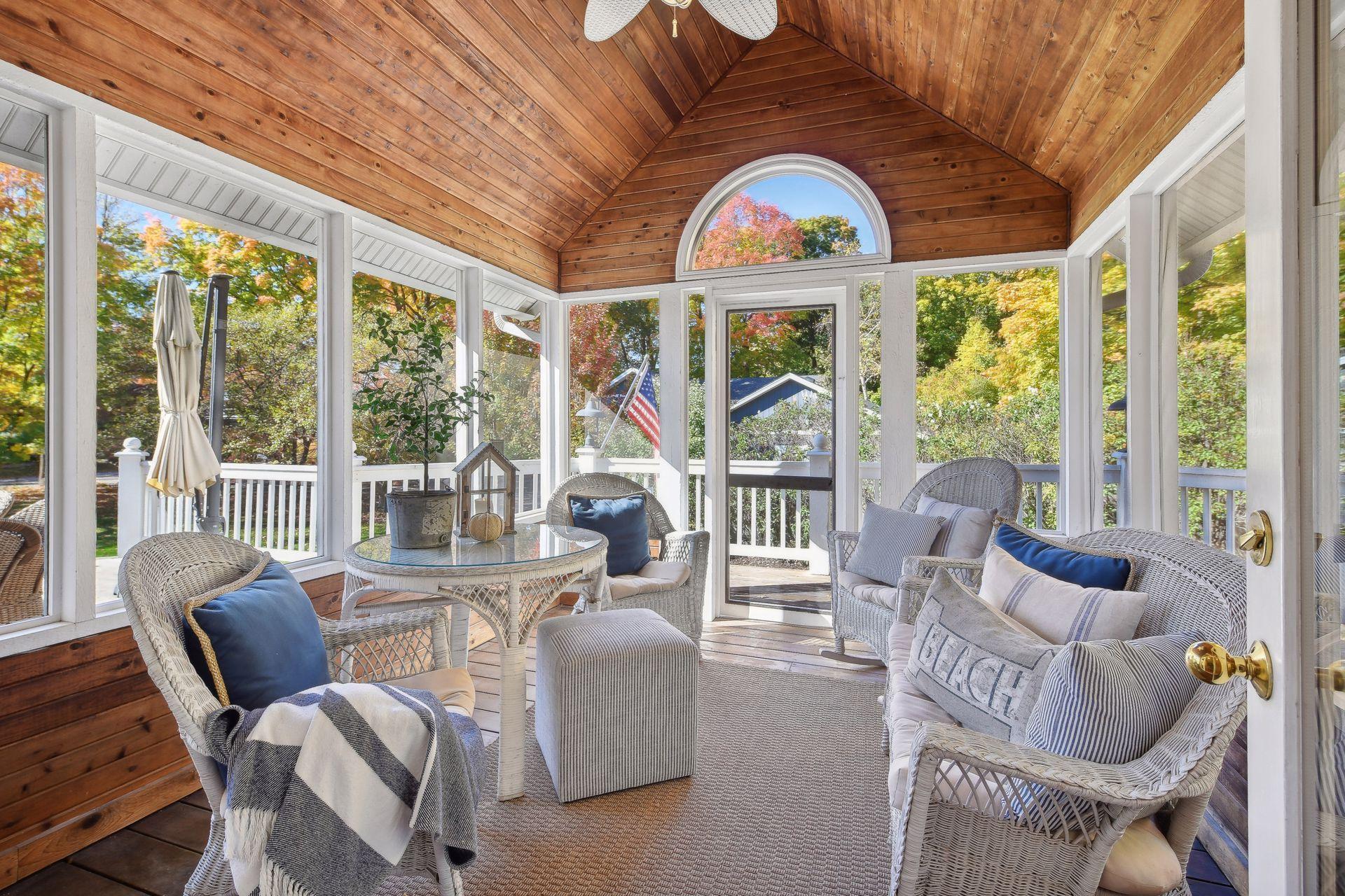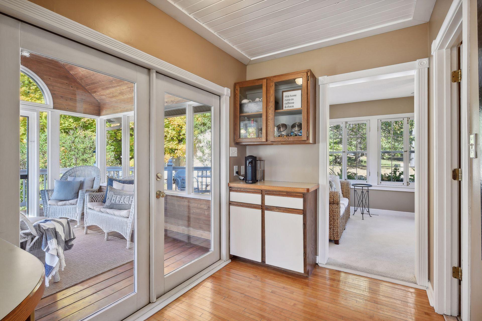 Welcome to 4000 N. Shore Drive! This charming home sits on just over a half acre with pretty landscape gardens, beautiful mature trees and open yard space. The main level features warm wood floors throughout, expansive windows to flood the rooms with natural light, and an inviting seasonal porch that opens to the spacious deck and yard beyond. Three bedrooms and a full bath are found on the upper level, while the finished walk-out lower level provides additional gathering space in the rec room with wet bar/kitchenette. Detached 3-car garage has plenty of room for cars, yard equipment and recreational toys. Sandy Beach, North Arm and Maxwell Bay boat launches just down the street. Recent improvements include new well (2023) and new driveway (2021). Past improvements include new roof (2010), HVAC mechanicals (2009), and new siding/gutters (2005).